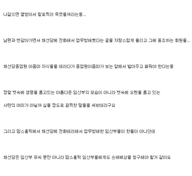 그리고 맘스홀릭에서 채선당에 전화테러해서 업무방해한 임산부들이 한둘이 아니던데