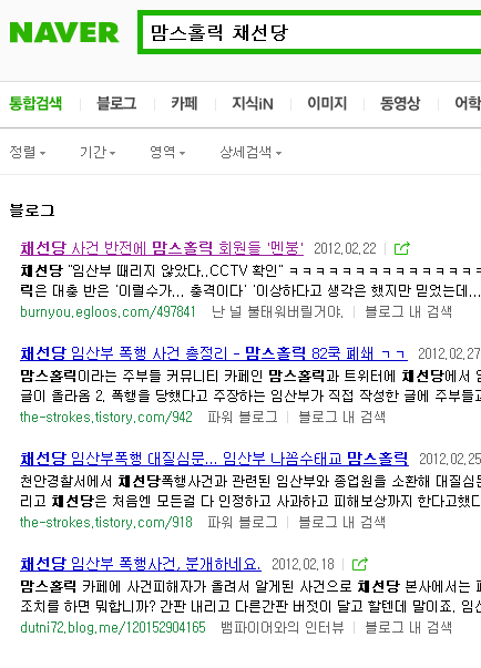 제 목 : 네이버 '맘스홀릭'까페에 들어가서 채선당 글 검색해보니 ㅎㄷㄷ