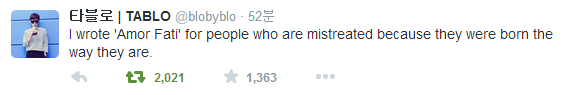 'Amor Fati'는 선천적으로 타고난 점들로 부당한 대우를 받고있는 사람들을 위해 쓴 곡입니다.