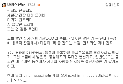특히 동성애로 이입하면 진짜 딱이야ㅠㅠ 거기다 여기 여시들 댓글 보니까 가사가 더 심오하고 진짜 ... 예술이다ㅠㅠㅠㅠㅠㅠㅠㅠㅠㅠㅠㅠㅠㅠㅠ -