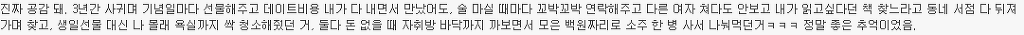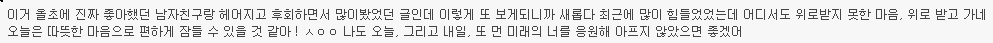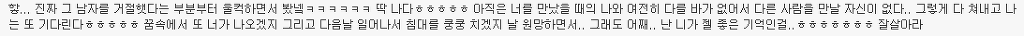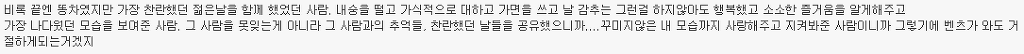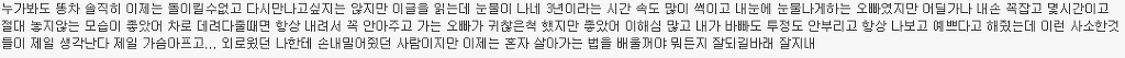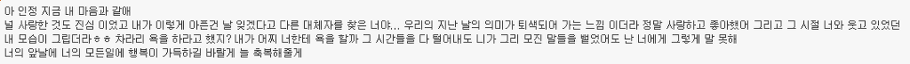 자체만으로도 소중했고 니가 내 남자친구라는 사실로도 좋았고 너와 함께 있는 것만으로도 행복했기에 기대하지 말고 거기서 만족했어야 했나봐.