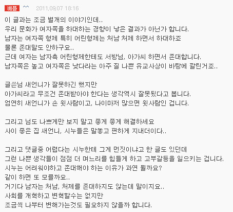 베플을 보고 충격 받음!