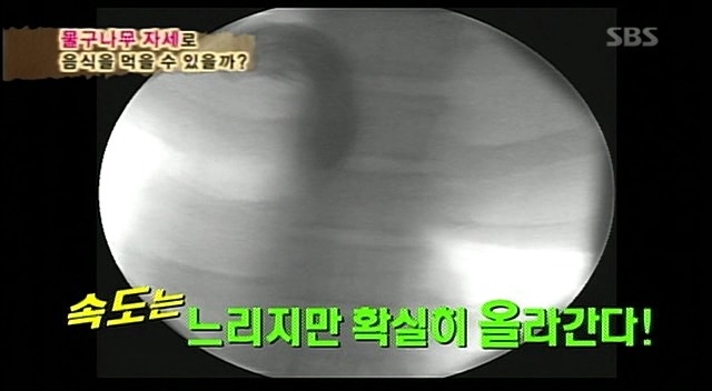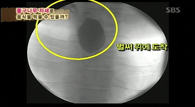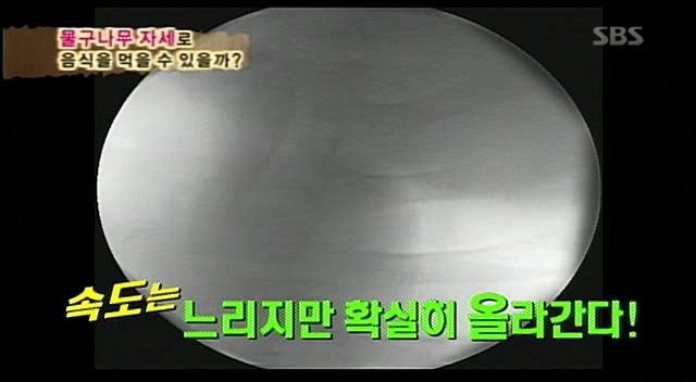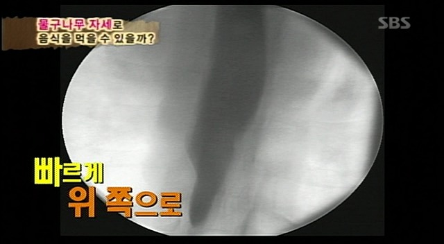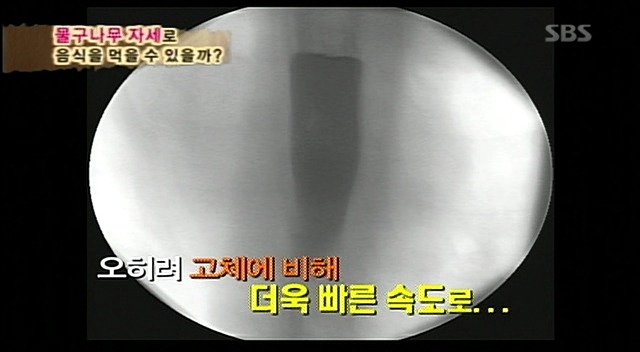 예성이가 먹었던 음식에 비하여 훨씬 빠른속도로 위를 향해 감.