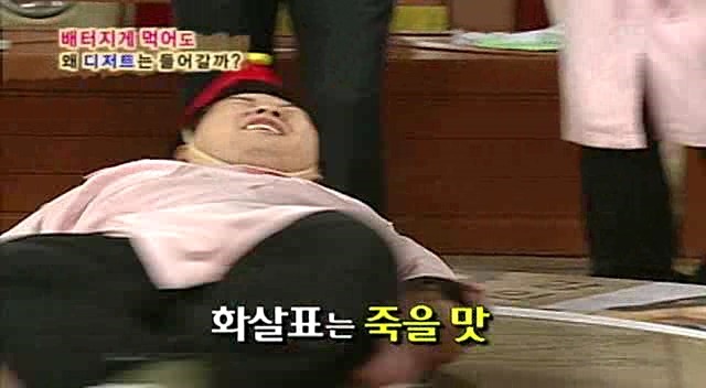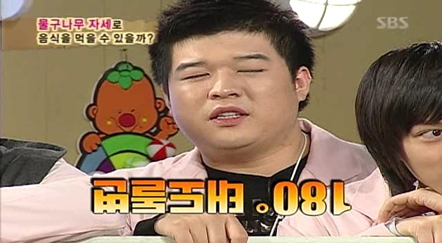 동엽: 밥먹어서 너~무 배가 부른데, 할머니가 '야~ 떡하나~ 먹어라~'