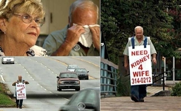 아내를 살리기위해 피켓을 걸고 거리로 나온 남편