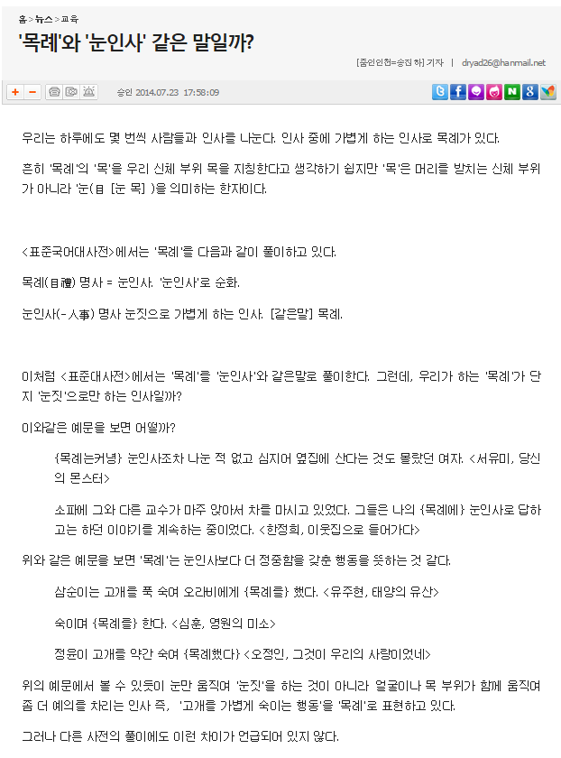 작성자햄버거는역시맥도날드 작성시간 15.03.05 헐ㅋㅋㅋㅋㅋ난 초딩때부터 목례 그냥 목인사인쥴ㅋㅋㅋㅋㅋㅋ한자뜻 찾을생각도 안한 그냥 똥멍청이