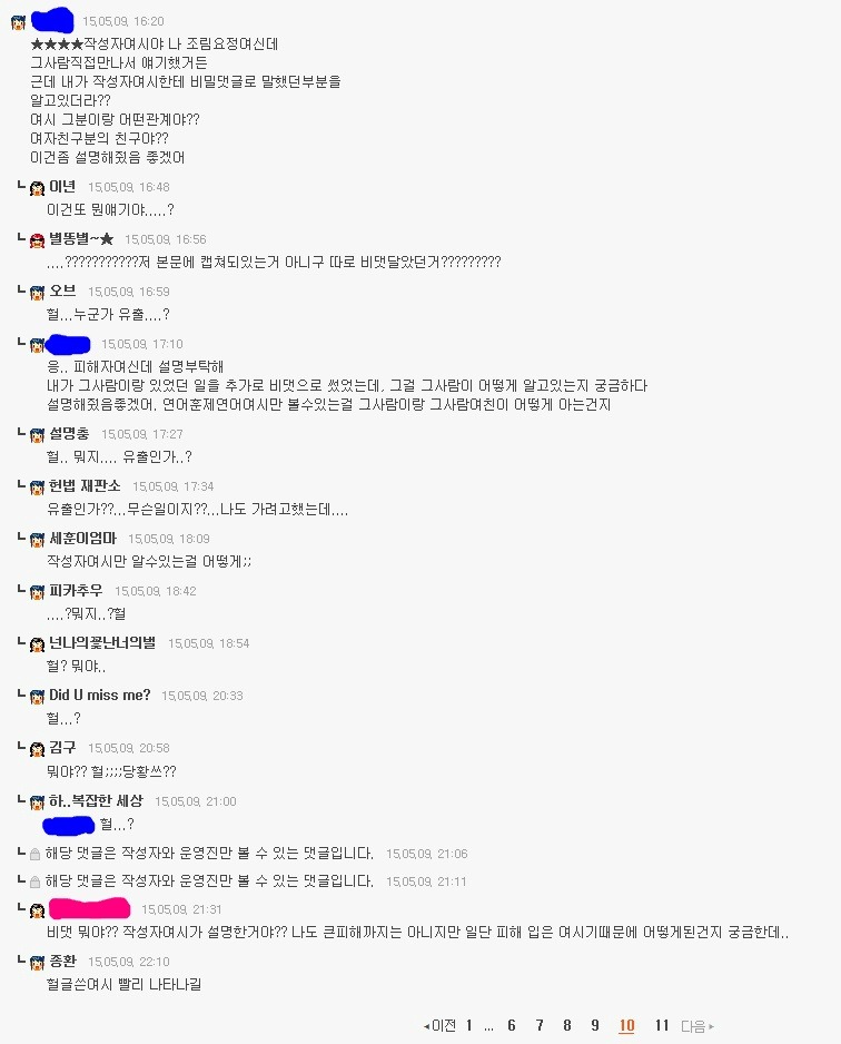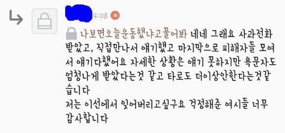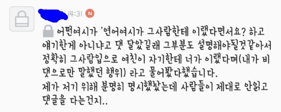 피해 여시가 비댓으로 연어여시에게'만'(본문엔 공개x) 얘기했던 내용을