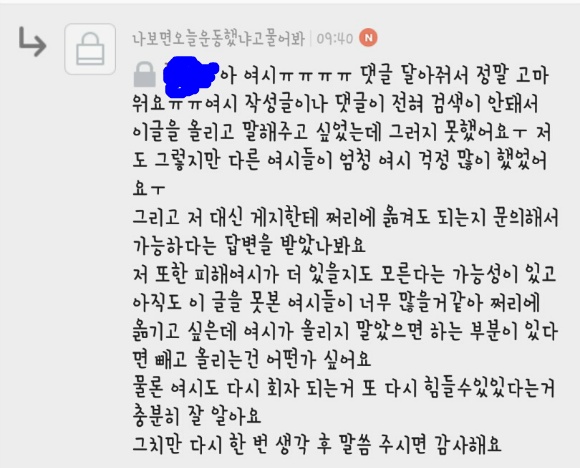 분명 제 댓글을 보고 갔던 여시들이 많이 있을 거라 생각합니다.