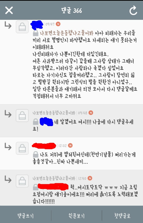 이전 글(두 번째 글)에 댓글을 달았던 여시들에게도 모두 대댓을 달며