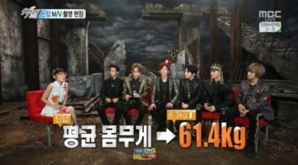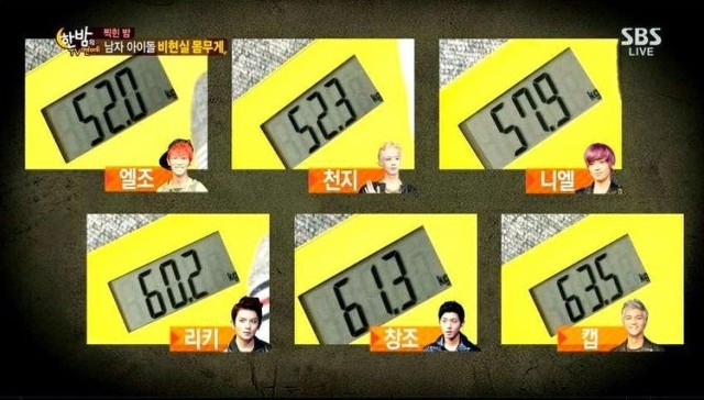 *틴탑의 경우 한밤에서 잰 몸무게는 옷,신발, 마이크 다 차고 있어서 -1kg했는데..!!!! 이건 2013년도꺼라네요