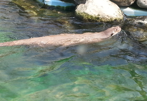 수달은 머리를 밖으로 내밀고 배를 아래로 해놓고 수영하지만..