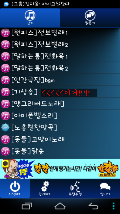 어플 사운드박스+ -> 기상송