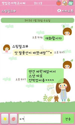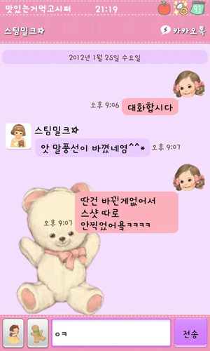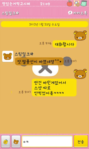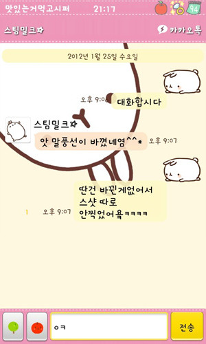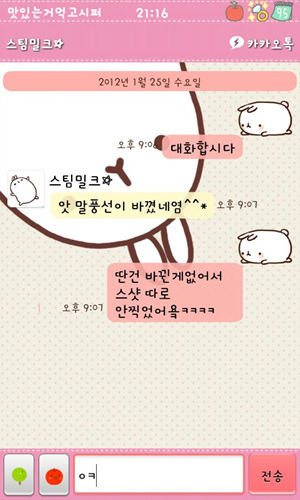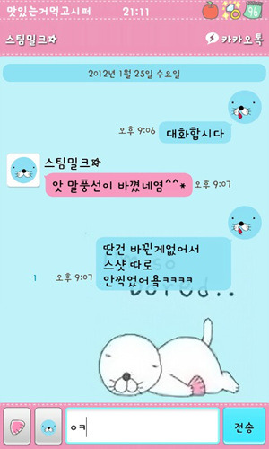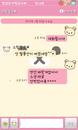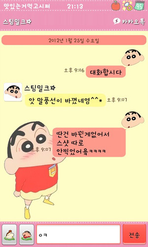 [스스마맡트포폰][안드로이드]스팀밀크 카카오톡 2.7.1ver(리락쿠마,보노보노,짱구,몰랑이,페이퍼돌,오케이티나+딩굴키보드리팩)