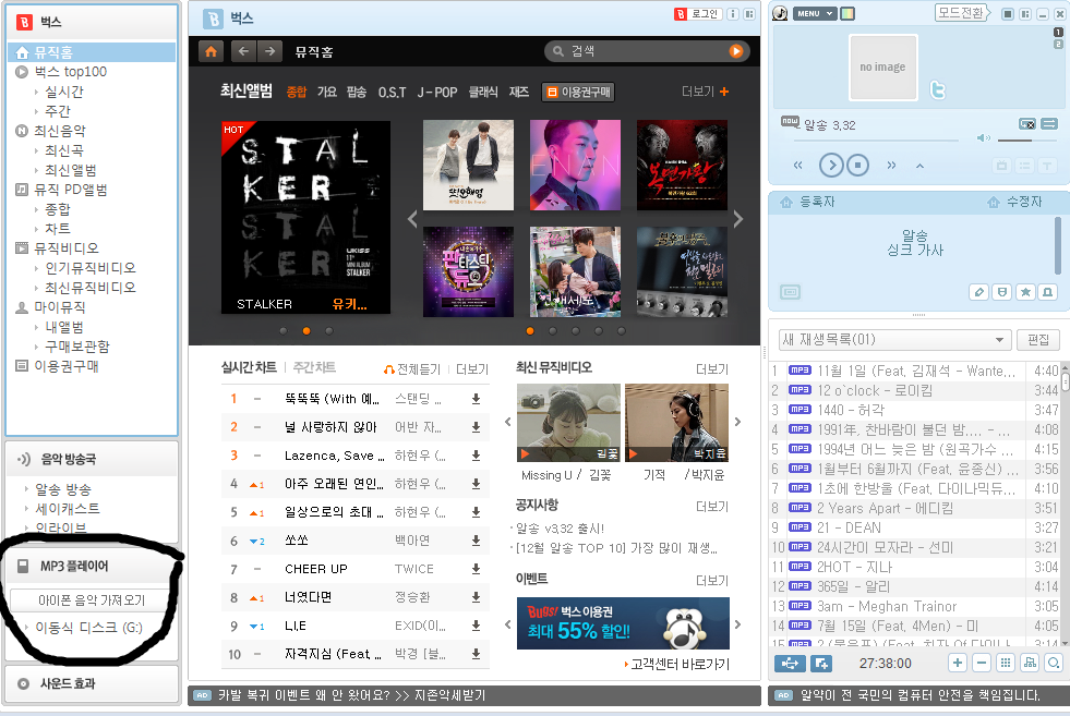 그래서 난 노래를 다날렸어^^..............그나마 거의 일년전에 남겨두었던 노래들이있어서 그거 넣고...최신노래는 ..생각나는데로 걍 다운 받아서 넣었지.....
