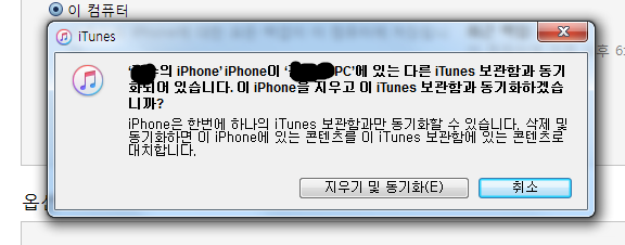 내가 처음엔 아무생각없이 지우기 및 동기화를 누르고 ^^ 그다음에 무슨경고창이떴는데 그냥 확인을 눌렀지...