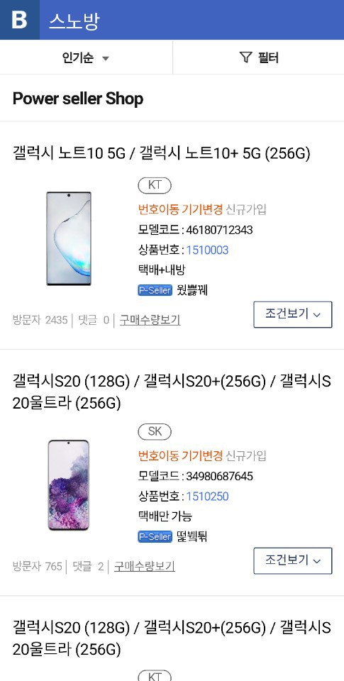스노방 첫화면 오른쪽 위 필터 누르면 폰종류 통신사 선택해서 여시가 원하는 조건에 폰을파는 판매자들만 볼수있어