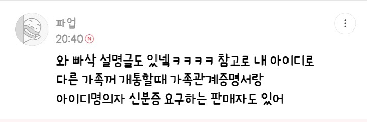 +) 타인 명의 이런경우도 있다니 참고하기!! 댓에서 허락받고 추가함