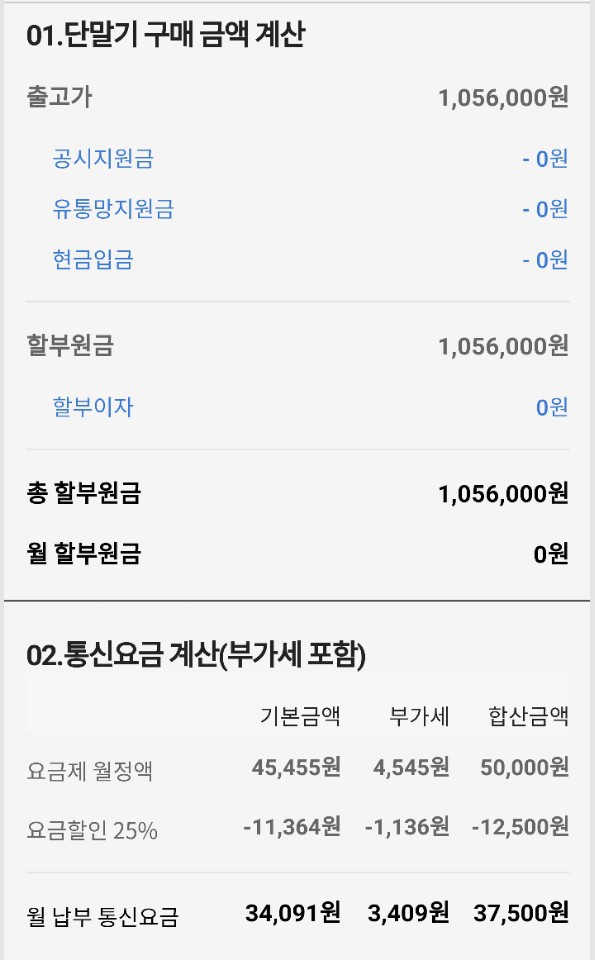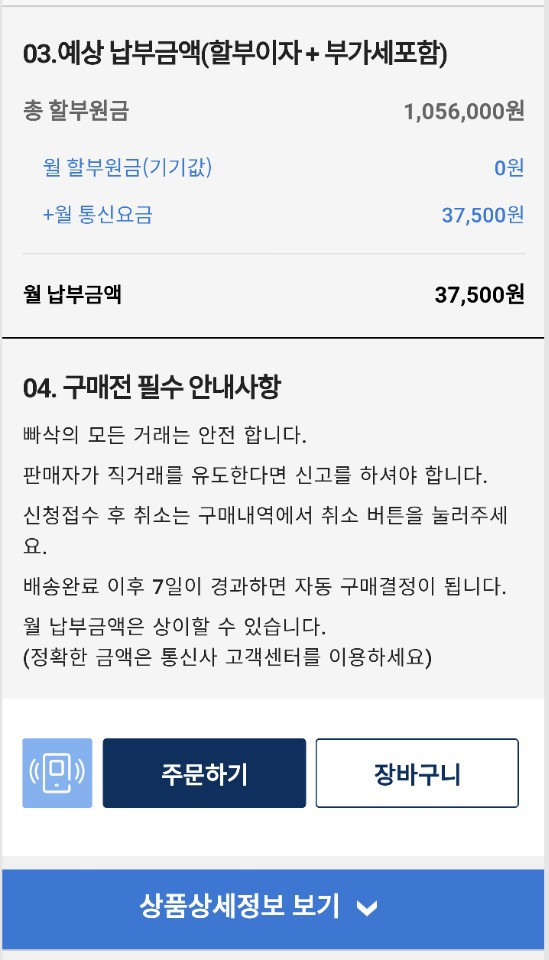 총 할부원금 나오니까 저 금액에서 징만큼 빼면되고 주문하기 왼쪽 보면 휴대폰 모양 버튼있지 저거 눌러도 징 확인 가능하니까 마지막까지 잘 확인해보고