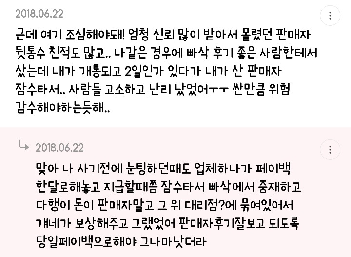 무겁게 거래하면 보통 당일 페이백이고 개통된다음에 돈들어와 하루이틀 지나서 주는 판매자도 있으니 후기 잘확인하고 택배거래시 폰 먼저받고 입금하는경우가있고 일단 입금하고 택배받는경우가있음