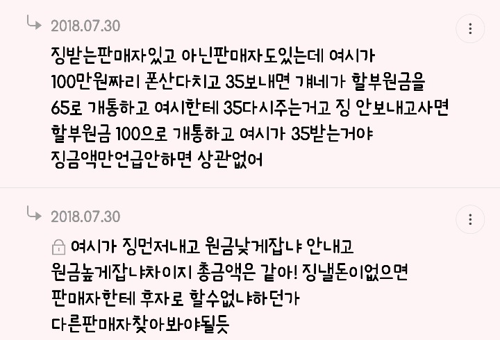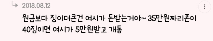 할부니까 당장은 돈 안들지? 라고 생각할수있는데 거래내역을 남겨야되서 징 금액만큼 입금하라고 한 다음에 개통 후 다시 돌려주는 방식임
