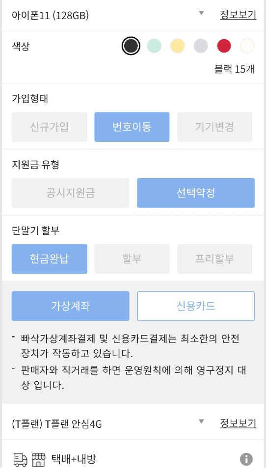 둘 중 하나만 가능한 경우도 있으니 폰 판매페이지에서 구매방식 잘 보고 결제 직전에도 잘 확인하기