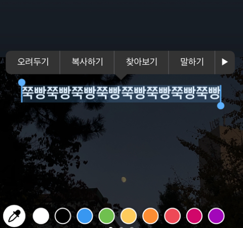 저 색 팔레트 아무 곳이나 꾹 누르면