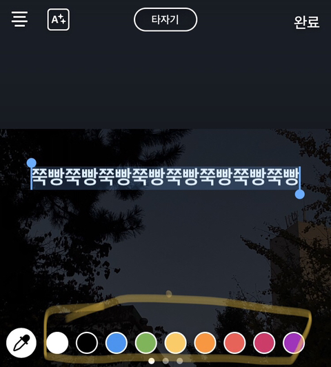 여기서 팁이 있다면 선택된 글자가 하나 남았을 때 꼭 멈춰야함!! 안 멈춘다면... 글씨가 한 색깔로 통일되어 버림!!!