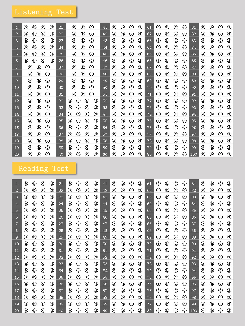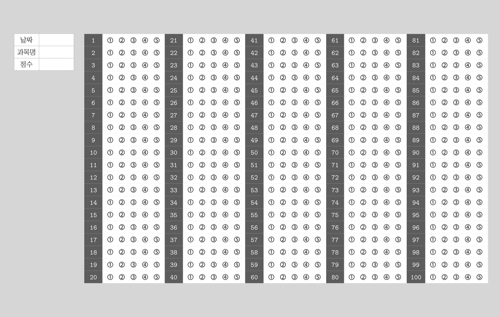 [아이폰자료]오지선다, 토익 오엠알 답안지 작성자Pixar Animation Studios|작성시간20.03.17|조회수5,332 목록 댓글 27 글자크기 작게가 글자크기 크게가 출처 : 여성시대 Pixar Animation Studios오지선다랑 토익 오엠알 답안지 내가 쓰려고 만든건데 여시들이랑 공유하고 싶어서 올려봐공부하는 여시들 모두 화이팅하자! TOEIC OMR.pdf 오지선다.pdf 첨부파일첨부된 파일이 4개 있습니다. jpg 파일 오지선다 답안지.jpg 다운로드 jpg 파일 토익 오엠알 답안지.jpg 다운로드 pdf 파일 TOEIC OMR.pdf 다운로드 pdf 파일 오지선다.pdf 다운로드 다음검색 현재 게시글 추가 기능 열기 북마크 공유하기 신고 센터로 신고 댓글 댓글 27 댓글쓰기 답글쓰기 댓글 리스트 작성자Ms. Delicate | 작성시간 21.08.08 너무 고마워용!!!!!! 잘쓸게요!!! 작성자금융 | 작성시간 21.10.01 고마워♡!!! 작성자코끼리거치대 | 작성시간 22.03.15 고마워! 정말 잘 쓸게! 작성자토익900제발 | 작성시간 22.03.31 연어하다 발견했슴돠 여샤 고마워! 900넘어올게 ^_ㅠ 작성자럽다입으 | 작성시간 22.07.11 연어왔슴당 토익 공부 파이팅할게 고마워!!! 댓글 전체보기