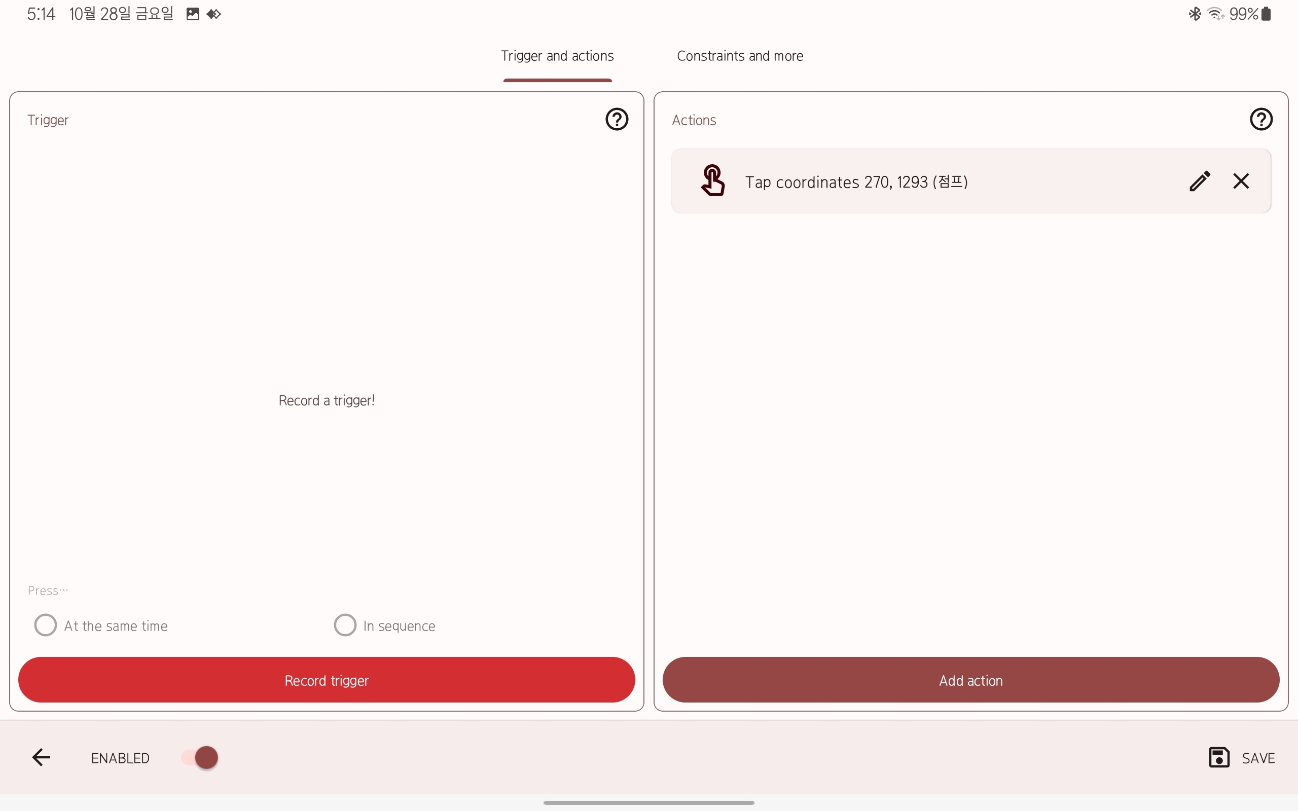 그리고 다시 key mapper로 돌아가서 2번의 add action을 눌러주고 tap screen을 누른 다음 select screenshot을 눌러서 아까 찍은 스샷을 넣어줘