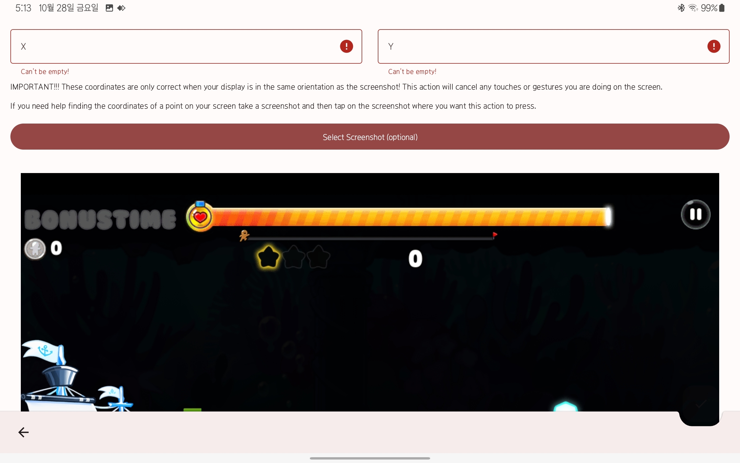 그리고 내가 누를 버튼을 눌러서 좌표를 지정해주고 체크 버튼을 누른 다음에 알아볼 수 있게 이름을 써줘