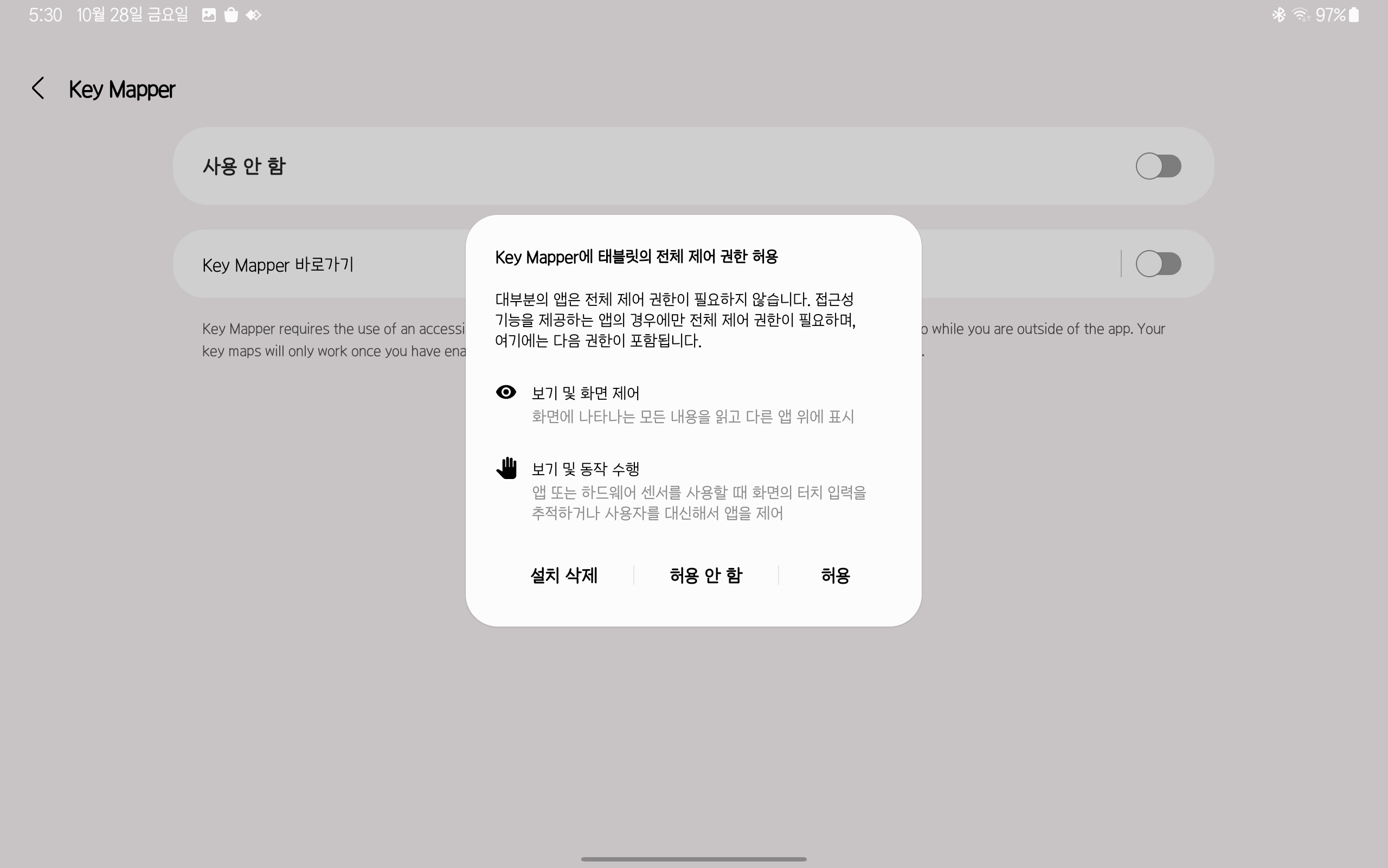 key mapper누르면 권한 허용창이 떠