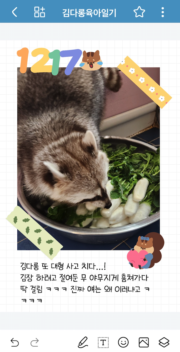 우리집에서 키우는 반려너굴맨(사실 라쿤임) 다롱이는 스티커가 없으니까 주로 잘라서 붙이는 편 ㅋㅋ