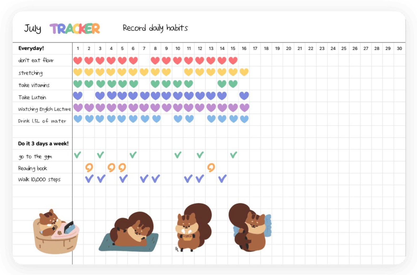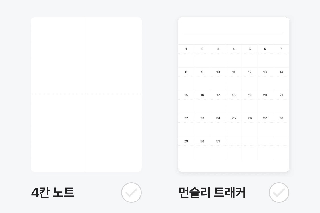 식단 관리를 할 때는 식단 체크용으로, 또 운동 스케줄 조정할 때도 먼슬리 트래커를 잘 사용할 수 있어.