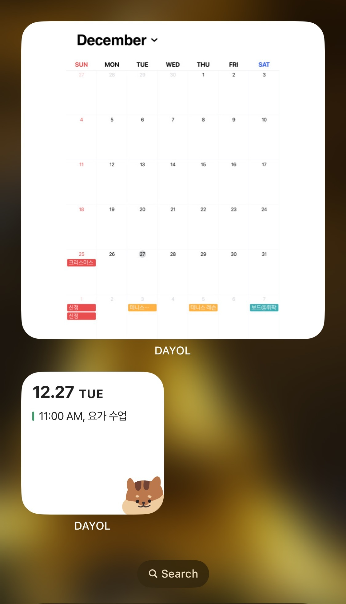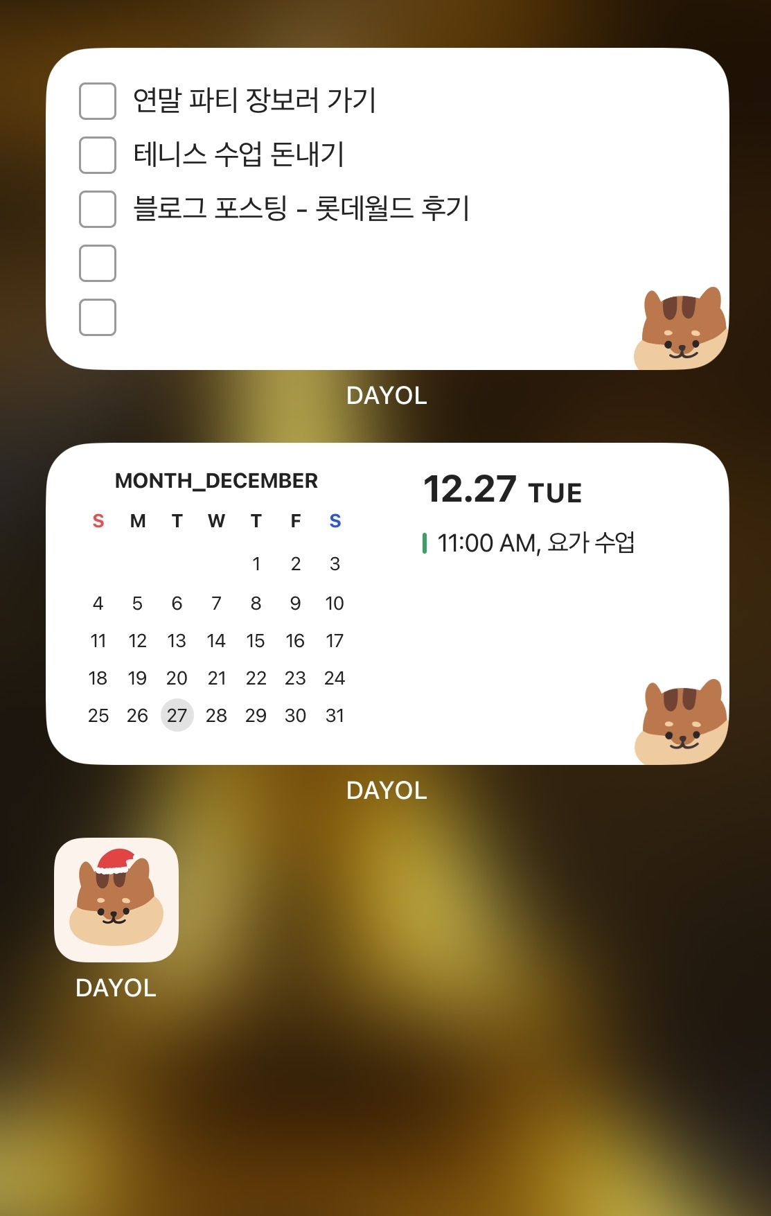 다욜에도 다양한 크기의 먼슬리 위젯과 체크리스트 위젯이 있어.