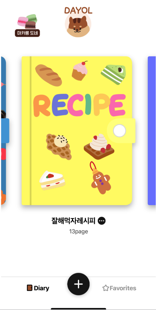 여러 개의 다이어리 지원이 가능해서 스케줄러 앱, 레시피 앱, 일기장 앱 등 다양하게 나눠 쓸 수 있어!