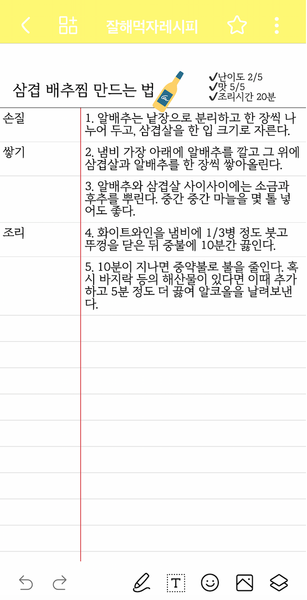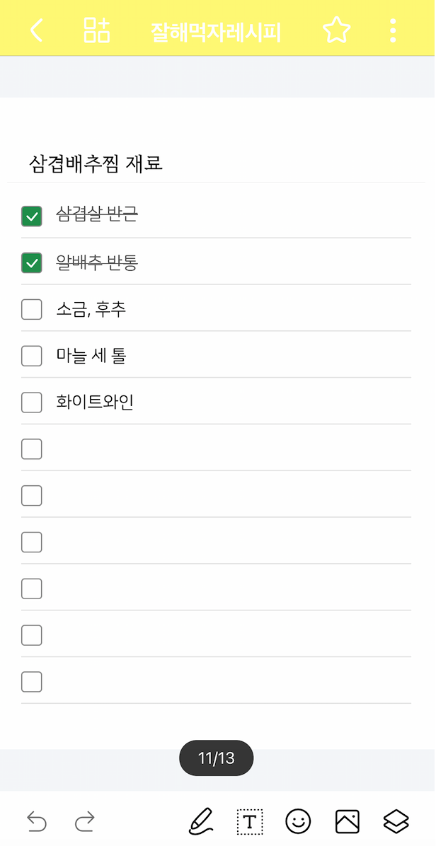레시피 정리해 둘 때는 코넬노트랑 체크리스트 함께 이렇게도 쓰고 있어.