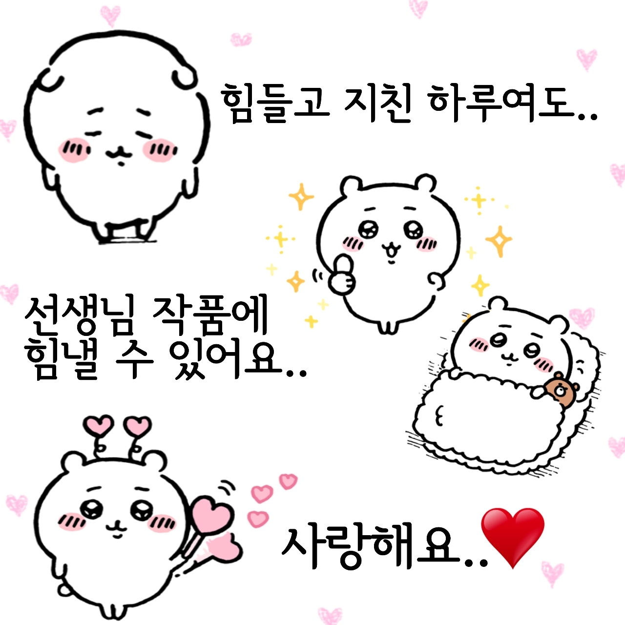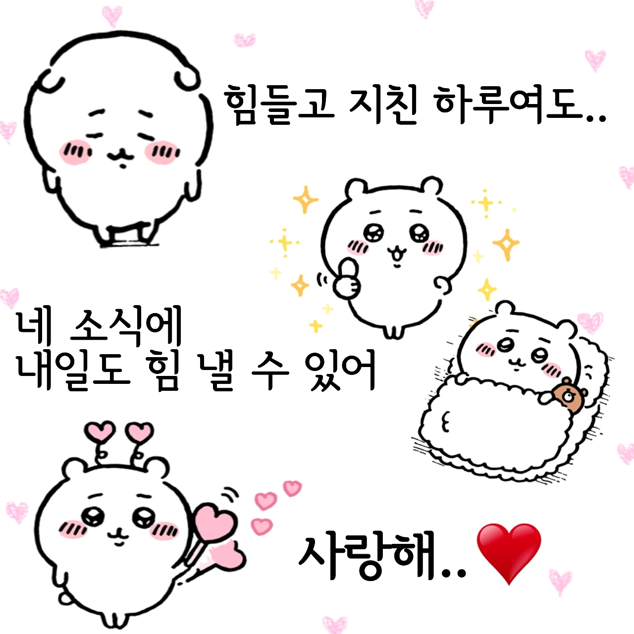농담곰 주접짤 덕질짤 운동짤 모음 작성자아아즈즈|작성시간21.09.01|조회수16,387 목록 댓글 5 글자크기 작게가 글자크기 크게가 농담곰 농담~곰얘네는 치이카와 하치와레 라고 농담곰 작가의 다른 캐릭터야 귀여움 다음검색 현재 게시글 추가 기능 열기 북마크 공유하기 신고 센터로 신고 댓글 댓글 5 댓글쓰기 답글쓰기 댓글 리스트 작성자震卯 704 | 작성시간 21.09.01 받아갑니다....🥰 작성자박하민 | 작성시간 21.09.01 졸귀...!!! 고마워용 작성자떼잉쯧쯔즈 | 작성시간 21.09.04 귀여웤ㅋㅋㅋㅋㅋㅋ고마워용! 작성자슬픔이여 안녕 | 작성시간 21.09.21 졸귀졸귀 고마워 !!!! 작성자간똘 | 작성시간 21.09.23 잉ㅋㅋㅋㅋㅋㅋ너무 귀엽다!!! 고마오~~~!!! 댓글 전체보기