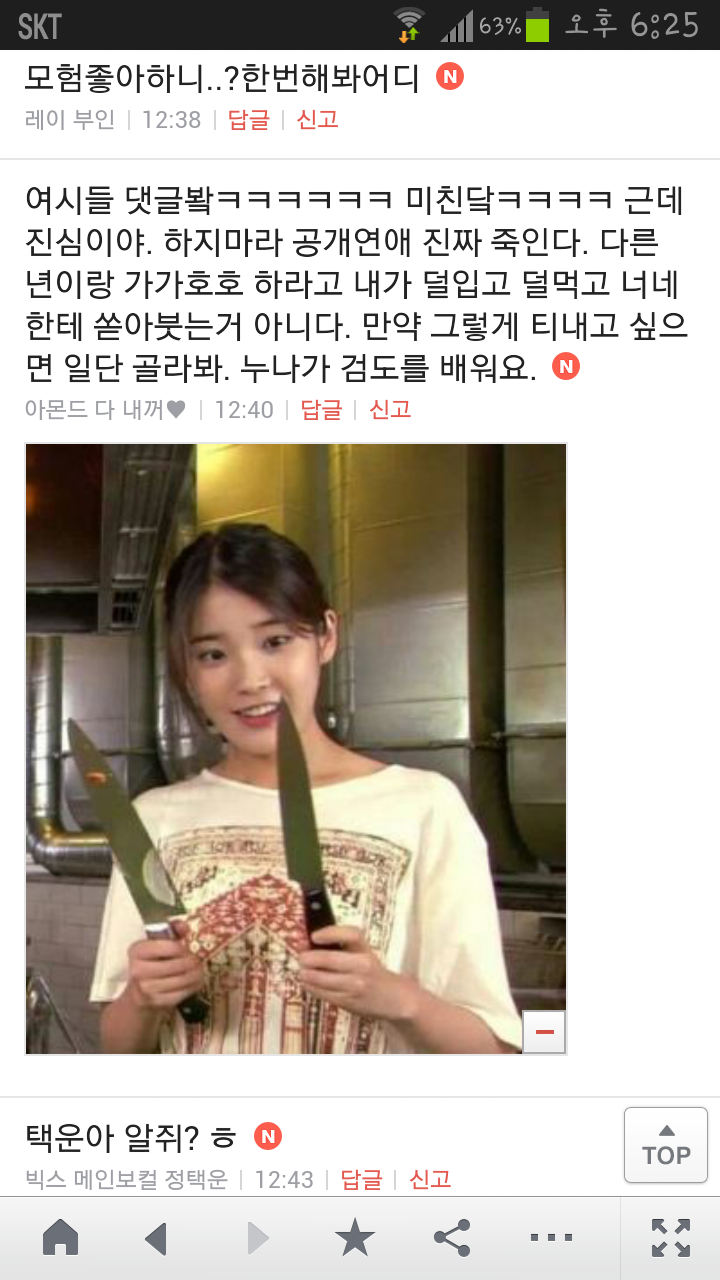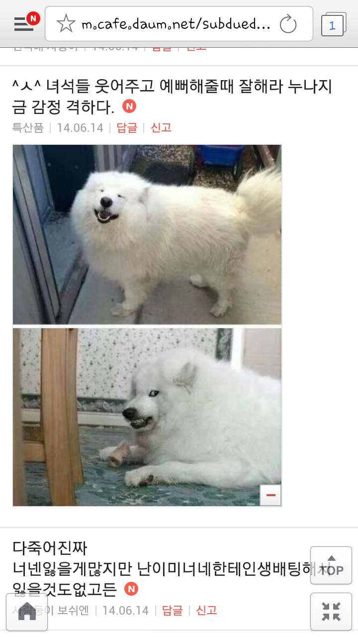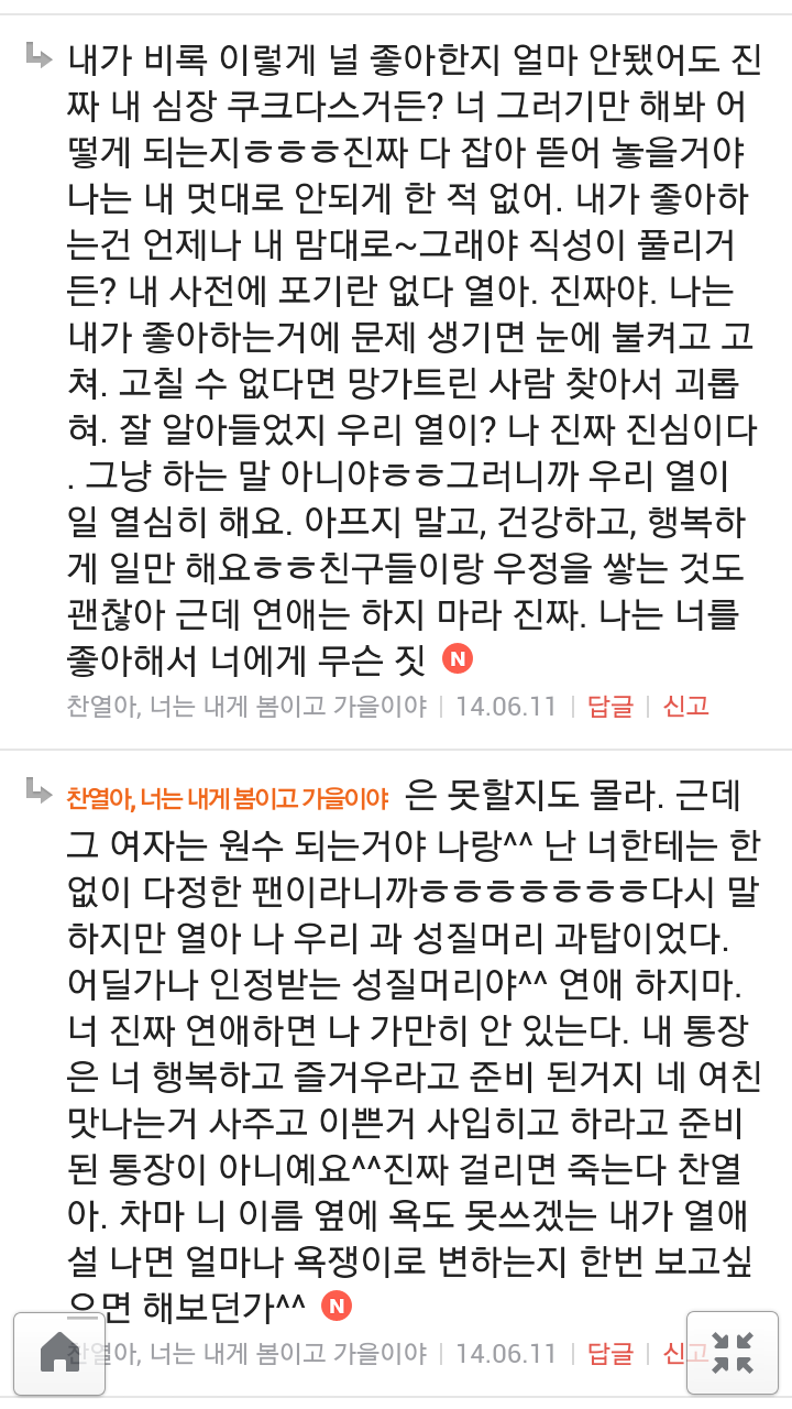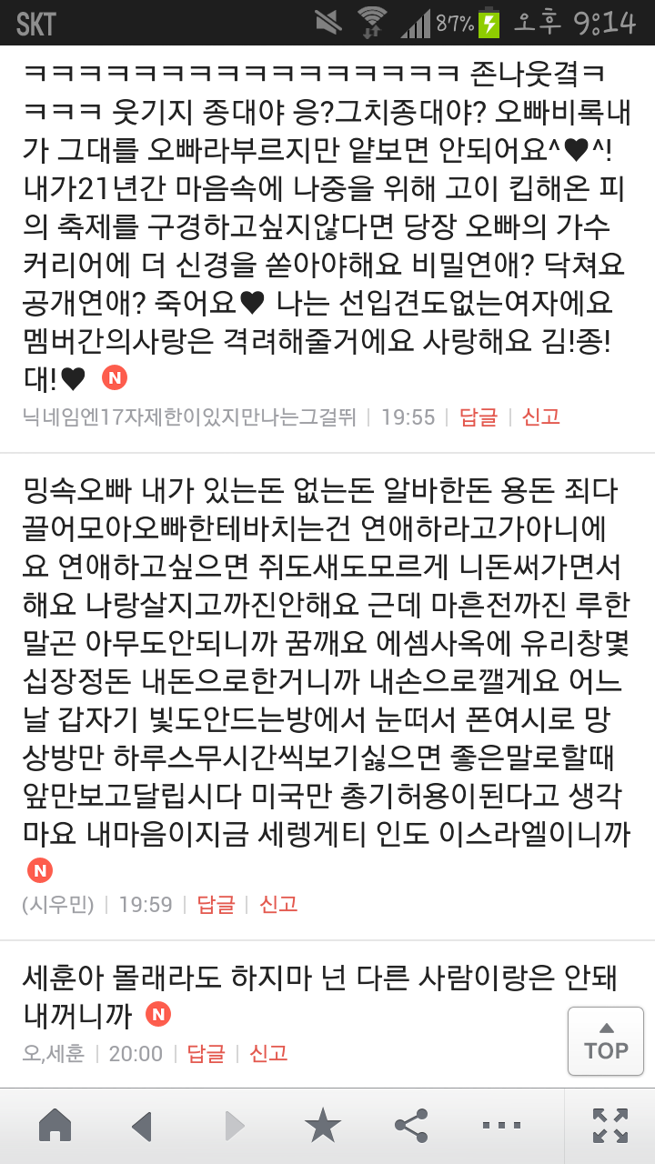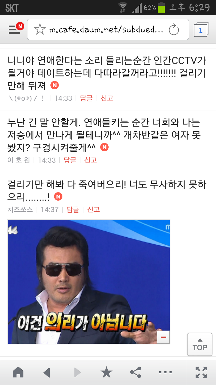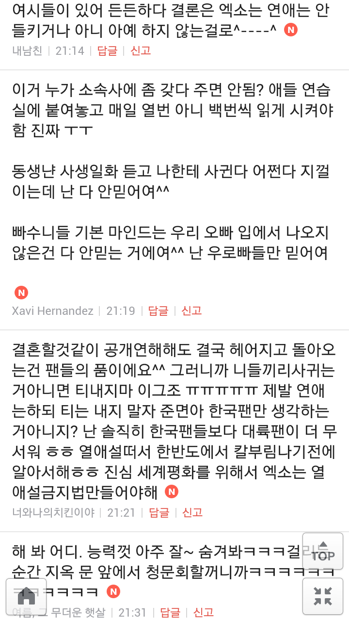[여시캡쳐]아이돌 공개연애 다메요 (팬여시 리플 마지막 ver.) 작성자좋은집주인|작성시간14.06.11|조회수13,730 목록 댓글 87 글자크기 작게가 글자크기 크게가 출처 : 여성시대 좋은집주인 다음검색 현재 게시글 추가 기능 열기 북마크 공유하기 신고 센터로 신고 댓글 댓글 87 댓글쓰기 답글쓰기 댓글 리스트 작성자유일운 | 작성시간 14.06.19 구경와따 ㅇㅅㅇ... 작성자코민코민하짐마 | 작성시간 14.06.20 하하하하ㅏㅏㅏ하하하하하ㅏ하ㅏ.................. 작성자BTD (베이컨토마토디럭스) | 작성시간 14.06.21 Aㅏ.........ㅎ... 작성자계피덕후 | 작성시간 14.06.22 다시 생각나서 왔어...청계천갈까봐 작성자중독[overdose] | 작성시간 14.06.25 ㅋㅋㅋㅋ.......시발 댓글 전체보기