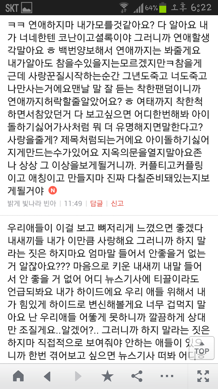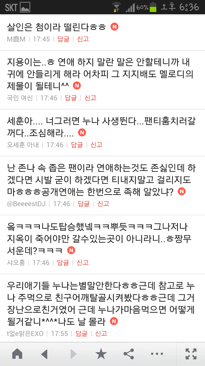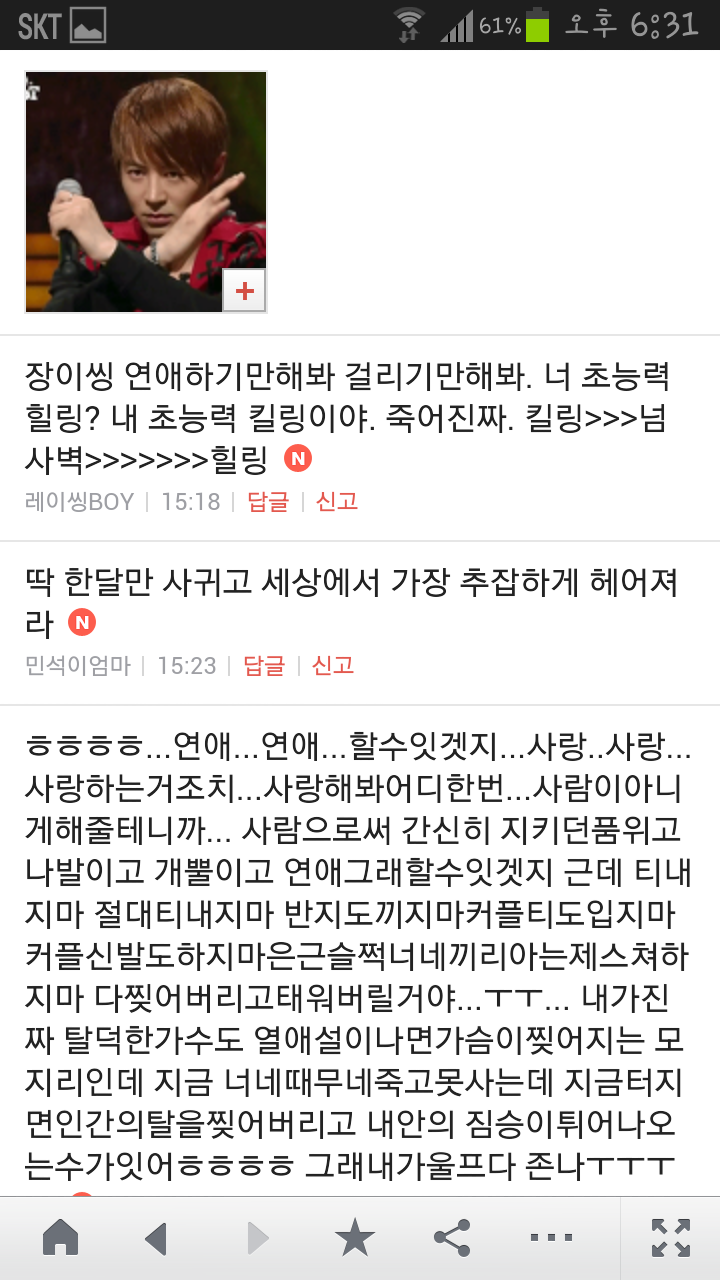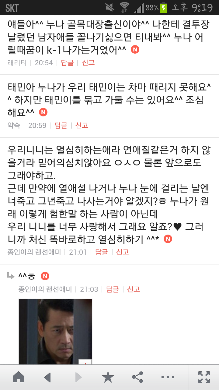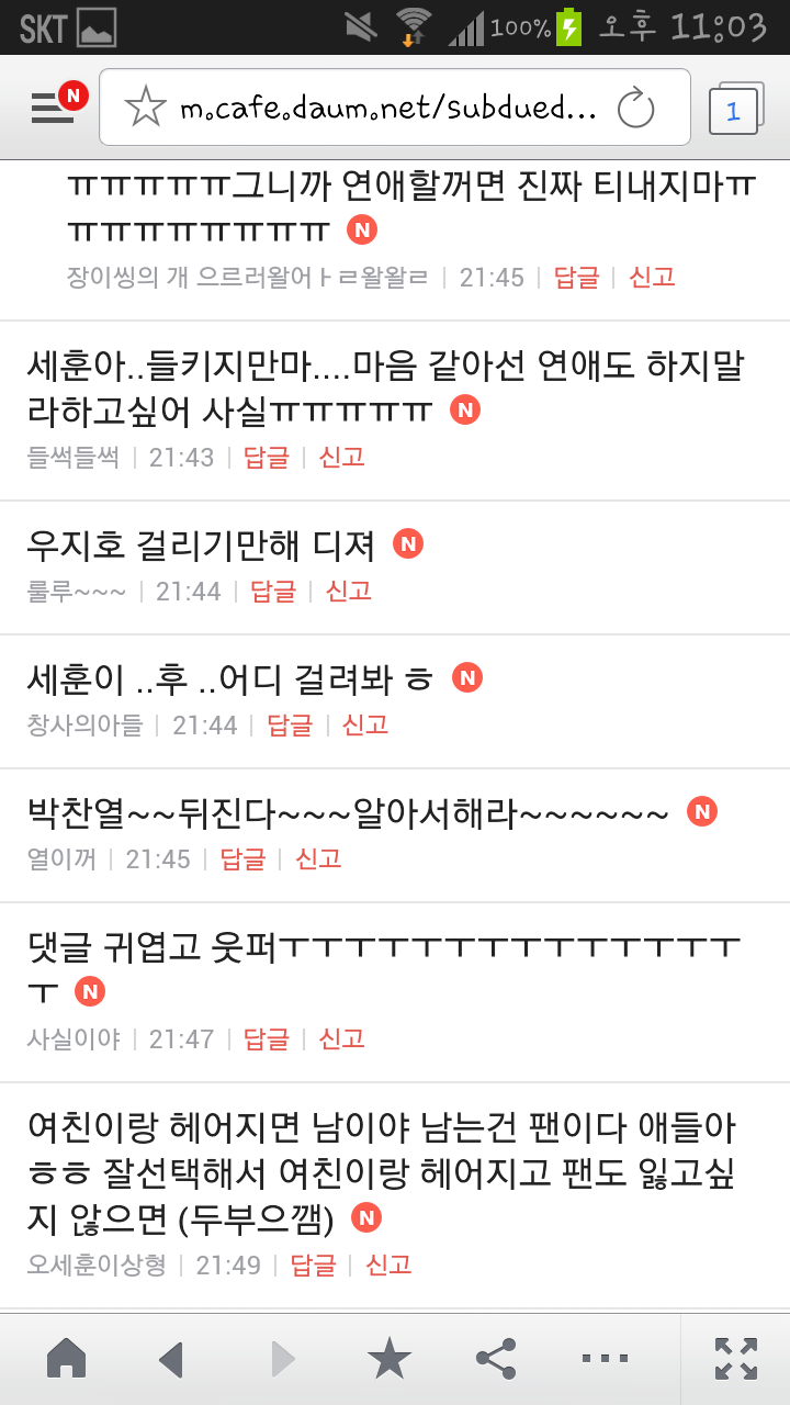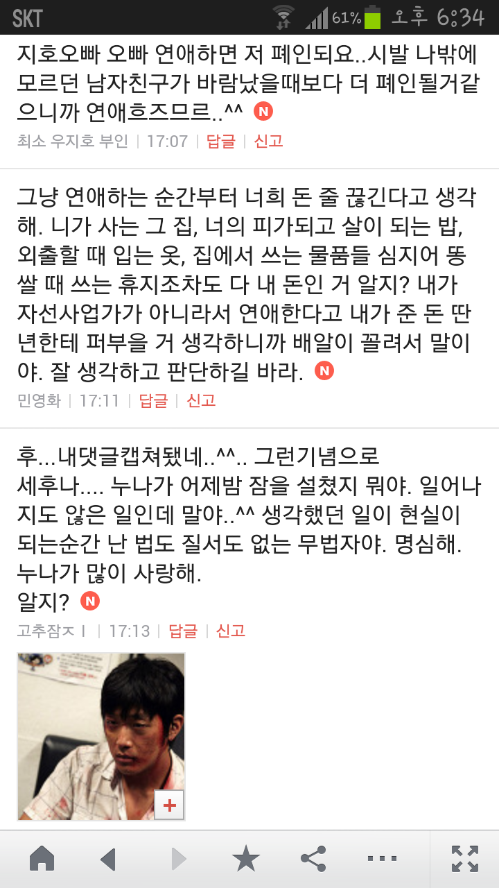 [여시캡쳐]아이돌 공개연애 다메요 (팬여시 리플 마지막 ver.) 작성자좋은집주인|작성시간14.06.11|조회수13,730 목록 댓글 87 글자크기 작게가 글자크기 크게가 출처 : 여성시대 좋은집주인 다음검색 현재 게시글 추가 기능 열기 북마크 공유하기 신고 센터로 신고 댓글 댓글 87 댓글쓰기 답글쓰기 댓글 리스트 작성자유일운 | 작성시간 14.06.19 구경와따 ㅇㅅㅇ... 작성자코민코민하짐마 | 작성시간 14.06.20 하하하하ㅏㅏㅏ하하하하하ㅏ하ㅏ.................. 작성자BTD (베이컨토마토디럭스) | 작성시간 14.06.21 Aㅏ.........ㅎ... 작성자계피덕후 | 작성시간 14.06.22 다시 생각나서 왔어...청계천갈까봐 작성자중독[overdose] | 작성시간 14.06.25 ㅋㅋㅋㅋ.......시발 댓글 전체보기