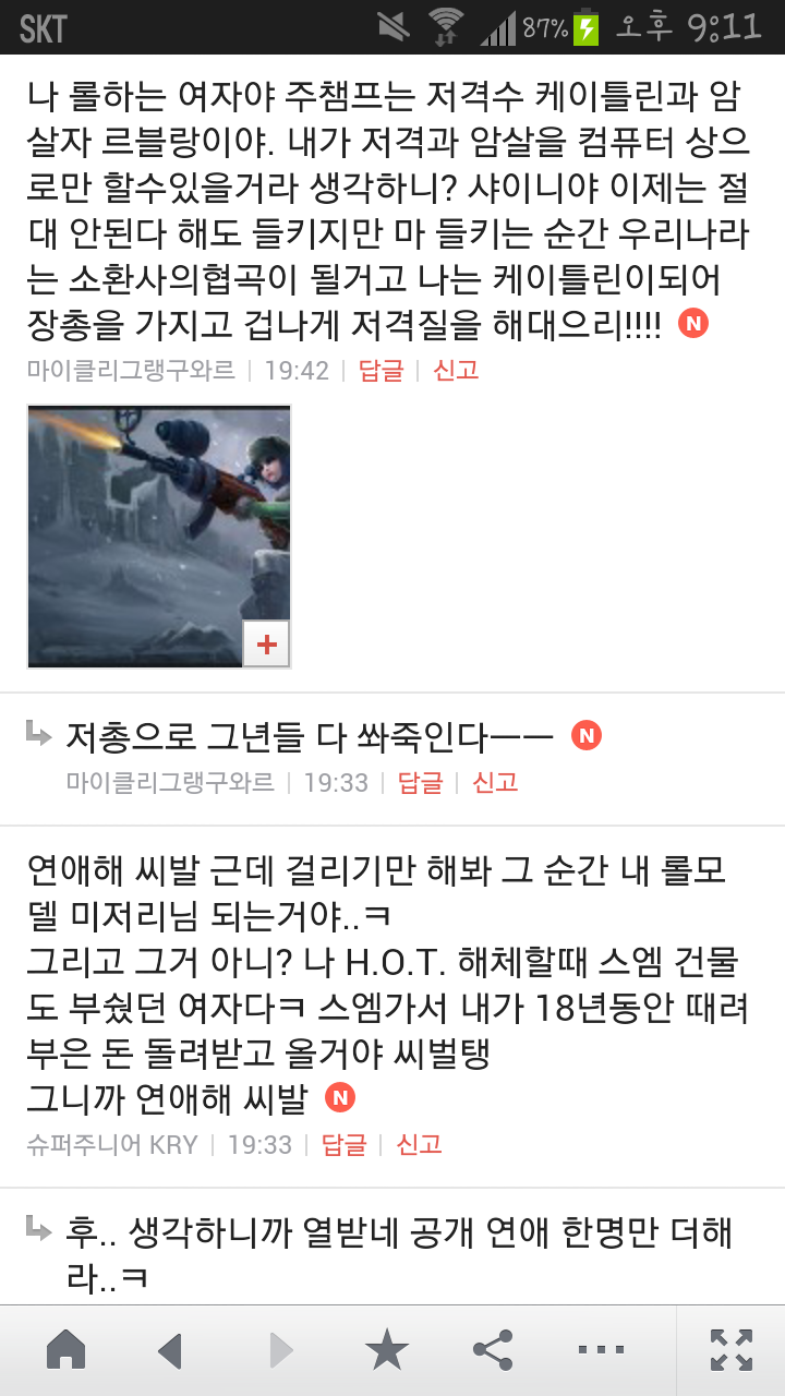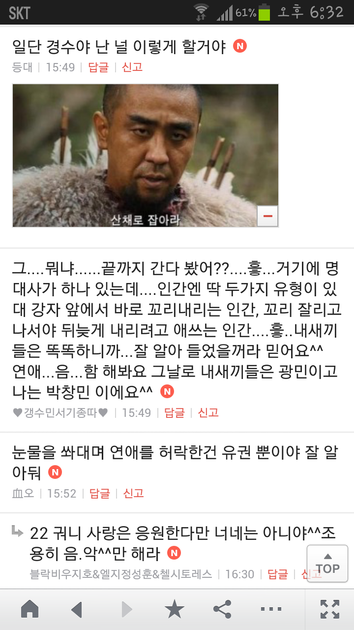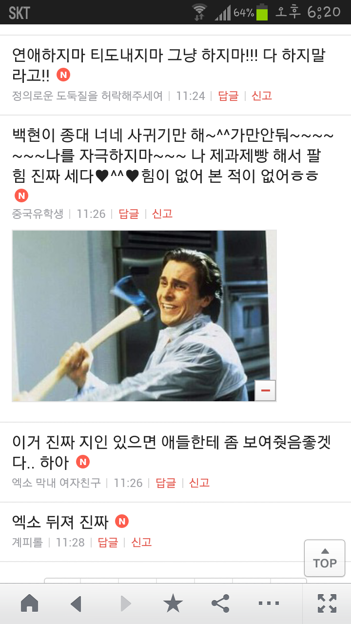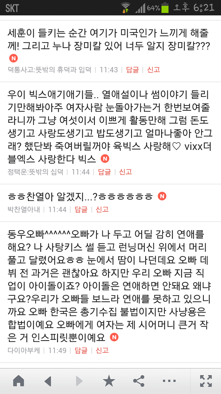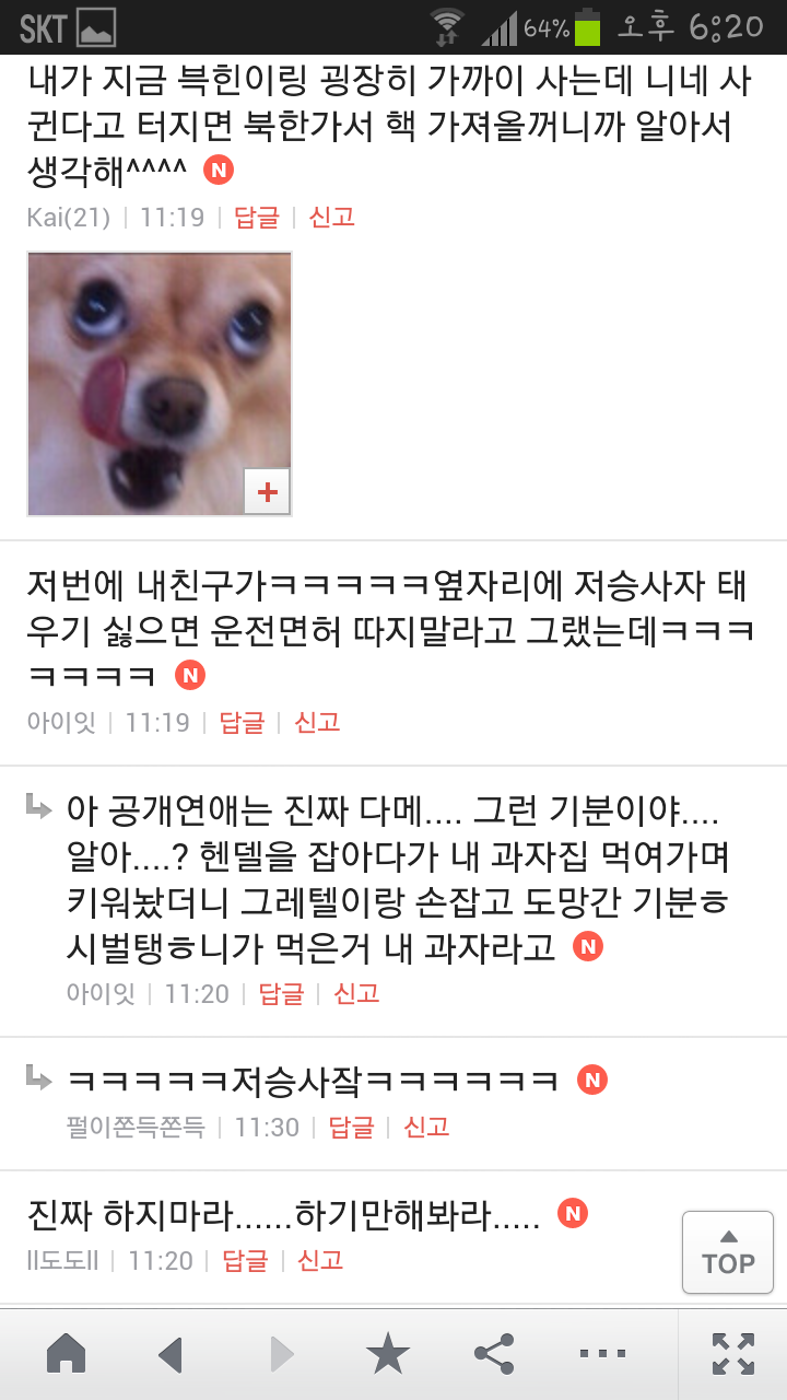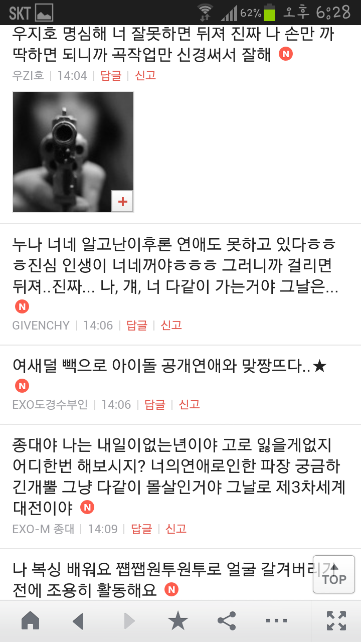 [여시캡쳐]아이돌 공개연애 다메요 (팬여시 리플 마지막 ver.) 작성자좋은집주인|작성시간14.06.11|조회수13,730 목록 댓글 87 글자크기 작게가 글자크기 크게가 출처 : 여성시대 좋은집주인 다음검색 현재 게시글 추가 기능 열기 북마크 공유하기 신고 센터로 신고 댓글 댓글 87 댓글쓰기 답글쓰기 댓글 리스트 작성자유일운 | 작성시간 14.06.19 구경와따 ㅇㅅㅇ... 작성자코민코민하짐마 | 작성시간 14.06.20 하하하하ㅏㅏㅏ하하하하하ㅏ하ㅏ.................. 작성자BTD (베이컨토마토디럭스) | 작성시간 14.06.21 Aㅏ.........ㅎ... 작성자계피덕후 | 작성시간 14.06.22 다시 생각나서 왔어...청계천갈까봐 작성자중독[overdose] | 작성시간 14.06.25 ㅋㅋㅋㅋ.......시발 댓글 전체보기