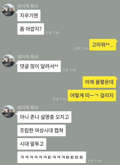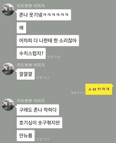 내가 동생한테 저 카톡 받고 얼마나 멘붕이 왔는데 자작의심이라니ㅠ