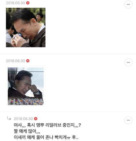 작성자무가당소속 작성시간 18.07.07 명박 우는거 아니고 노안때문에 눈물나는거 아닐까...