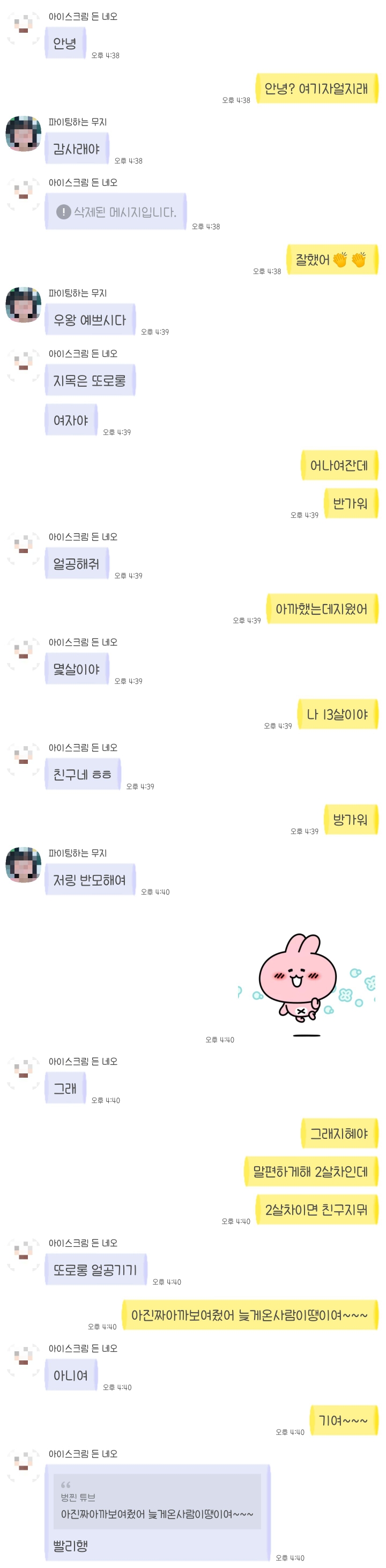 문제 있을시 초딩방들어가서 닉넴바꾸고 다시놀다옴 ㅎ
