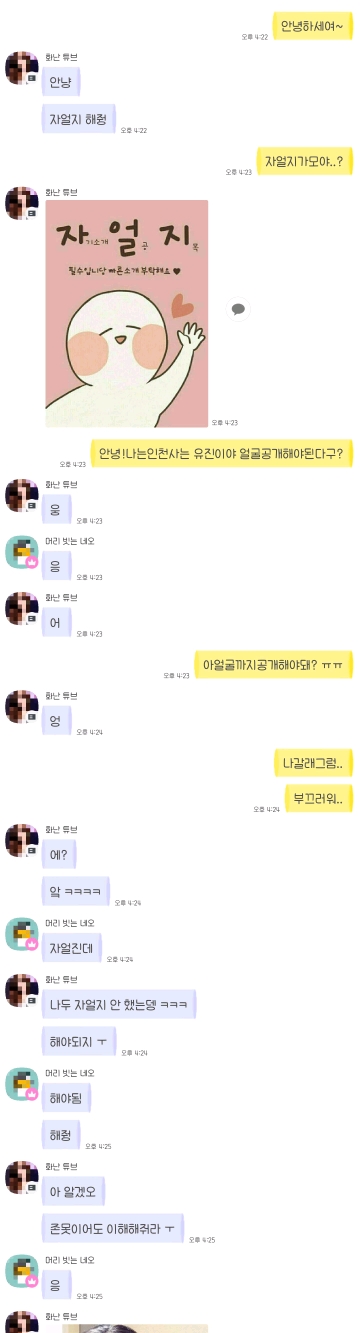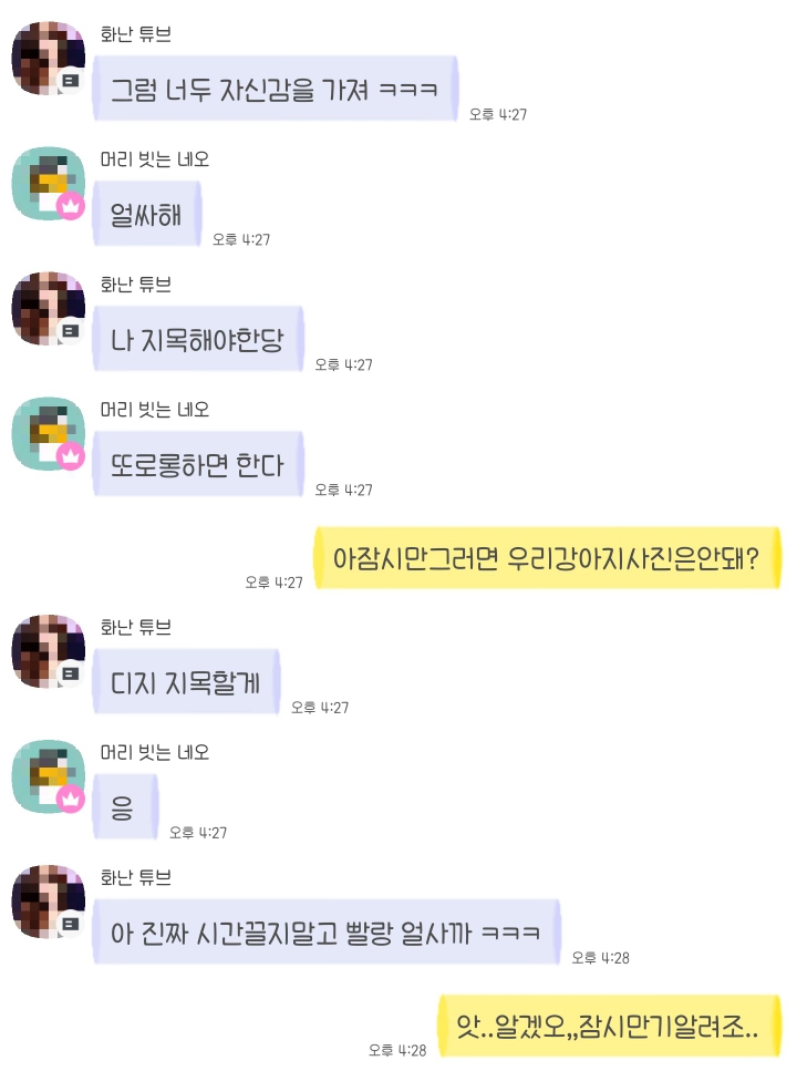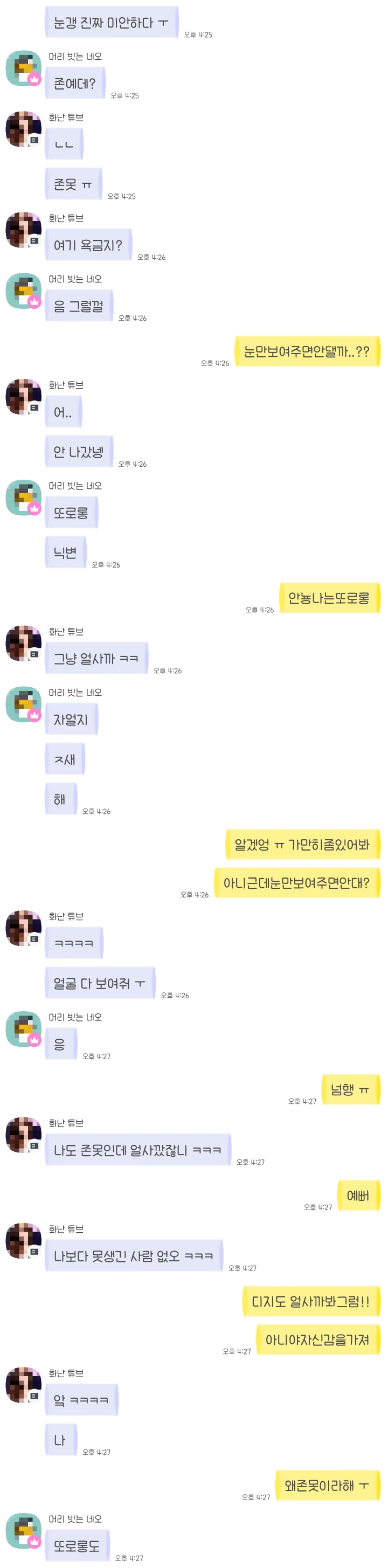 화난튜브( 13세. 여아) 가 얼사(얼굴사진)보냈는데 ,,,