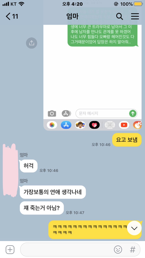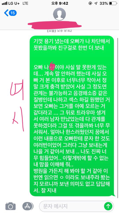 [메바여]전남친한테 오빠 고추가 너무 작아서 트라우마 생겼다고 문자 보냈는데 답장옴(+울 엄마 반응 추가했어)
