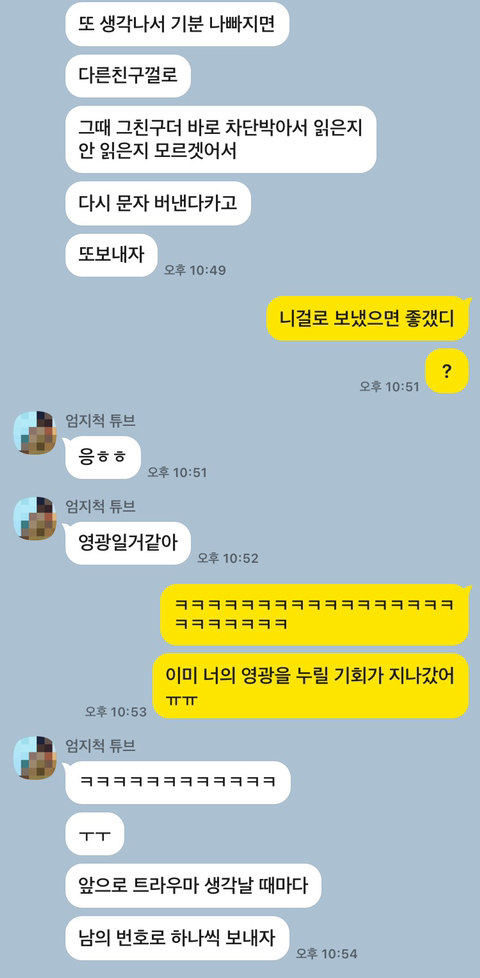 친구도 처음엔 말리더니 내 얘기 듣고는 니가 이걸 보내야 트라우마에서 벗어날 수 있을거 같다면서 막 뭐라고 말할지 도와줌