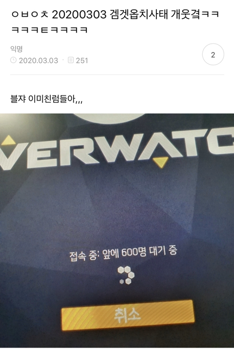 12. 오버워치 서버도 터지고 겜겟도 터지고