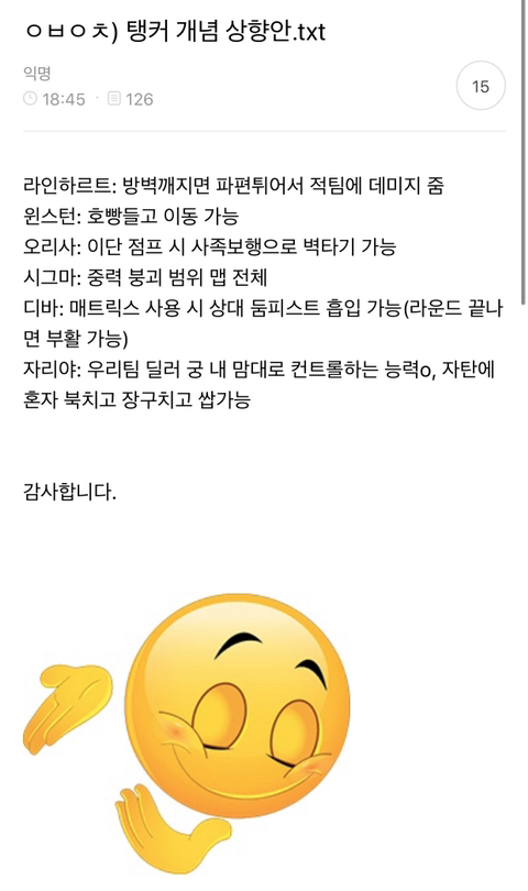 작성자런데이 하자 작성시간 20.03.18 옵치 탱커 상향안 보고 현웃터짐ㅋㅋㅋㅋㅋㅋㅋㅋㅋㅋㅋㅋㅋㅋㅋㅋㅋㅋㅋㅋㅋ