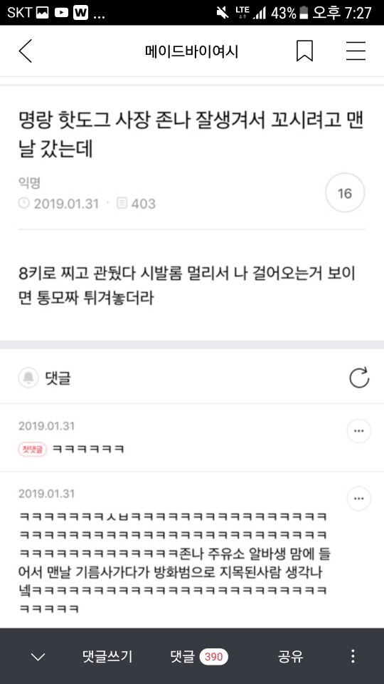작성자뽝수 작성시간 20.10.01 다 웃기닼ㅋ