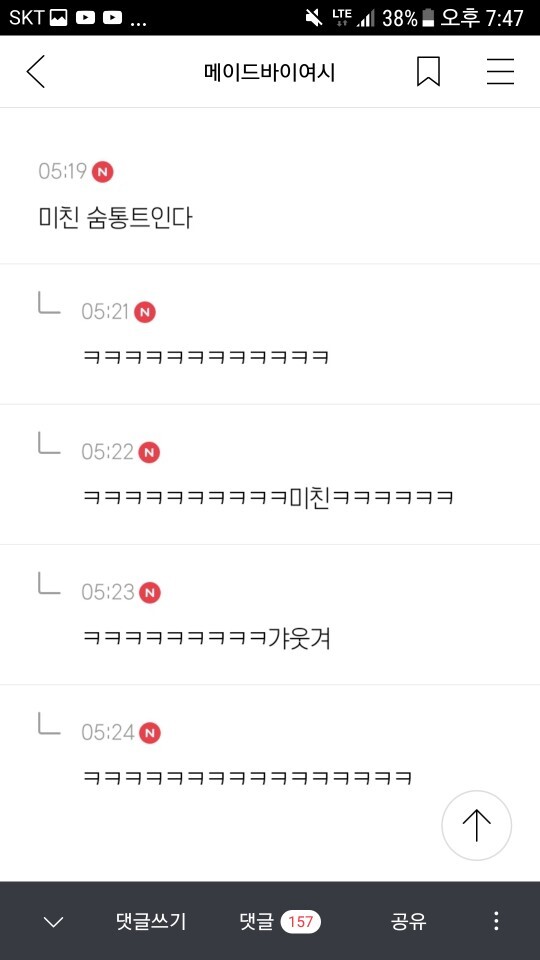 작성자그대여서 고마워요 작성시간 20.10.04 ㅋㅋㅋㅋㅋㅋㅋㅋ ㅋㅋ 숨통 ㅋㅋㅋㅋㅋㅋㅋㅋㅋㅋㅋㅋㅋ
